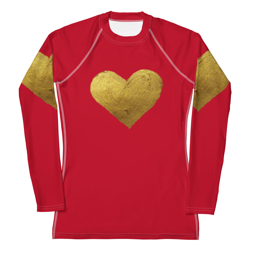 Don't be afraid to be your most active self in this smooth, Heart of Gold, versatile long-sleeve rash guard! It protects you from the sun, wind, and other elements while doing sports, and the slim fit, flat ergonomic seams, and the longer body gives extra comfort.