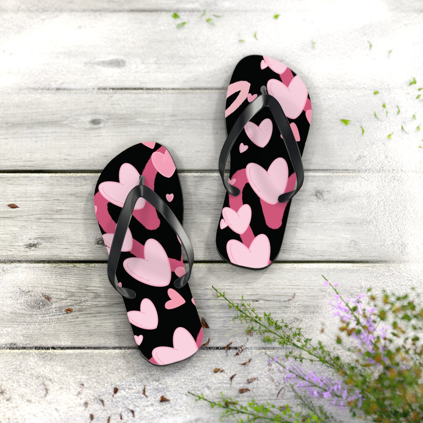 🌸 Strut in Style: Make every step a statement with these eye-catching flip-flops adorned with charming pink hearts. From sandy beaches to poolside glam, these flip-flops effortlessly blend comfort with a touch of whimsical flair.