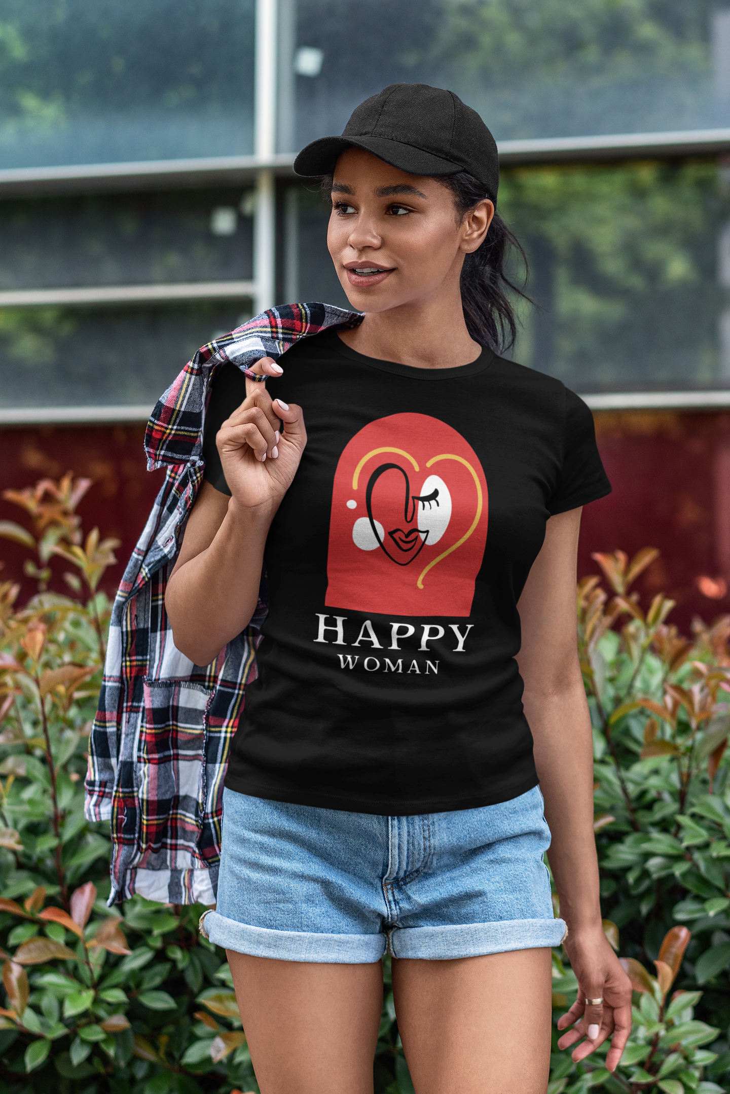 This classic women's short sleeve tee fits like a well-loved favorite. Soft cotton and a great tee to show off that you are a Happy Woman!