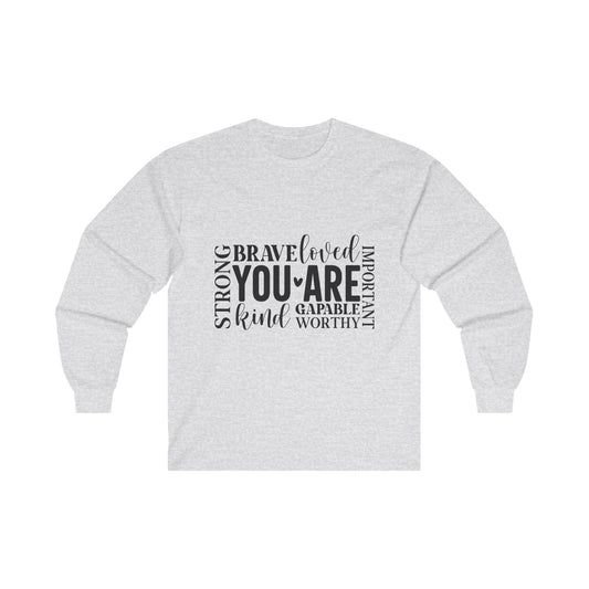 Inspirational Long Sleeve Tee - You Are Strong, Brave, Loved